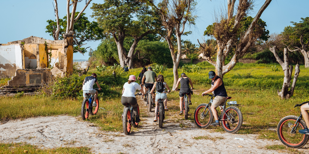 Aujourd'hui direction Palmarin pour y retrouver Tamsir, responsable de l'association Vélos sans frontières. Cette ONG espagnole permet notamment aux élèves des villages autour de Palmarin de disposer d’un vélo pour se rendre à l’école. C'est parti pour une balade en Fat Bike. Parcourez la brousse et traversez des villages typiques de la région. Une occasion unique de découvrir le Sénégal autrement, entre villages et champs.