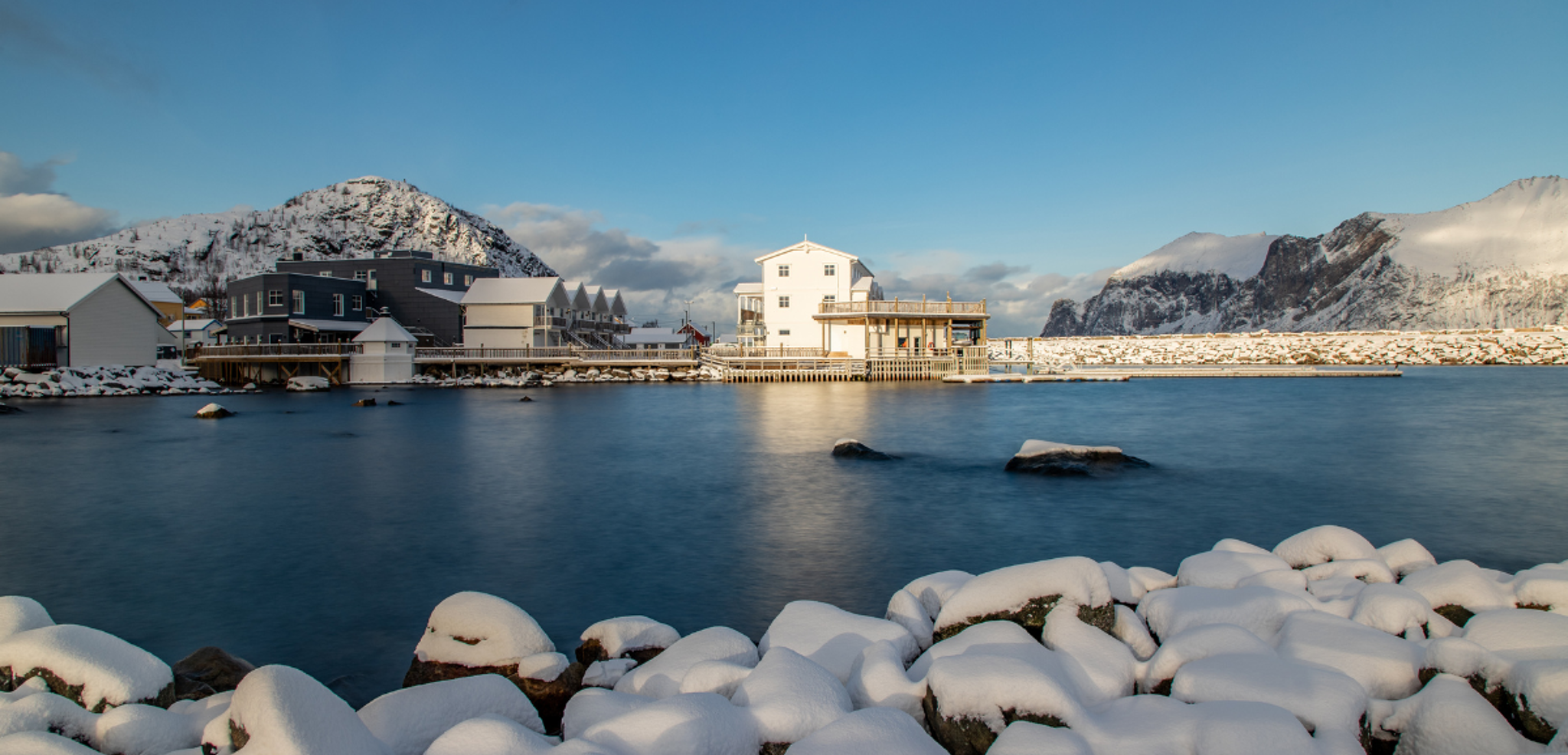 Direction l’île de Senja via Finnsnes. Vous prenez la route pour rejoindre votre nouvel hébergement idéalement situé au bord de la mer.